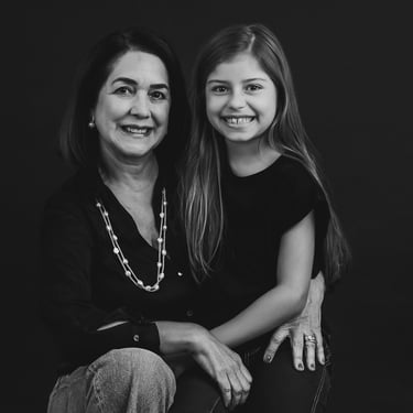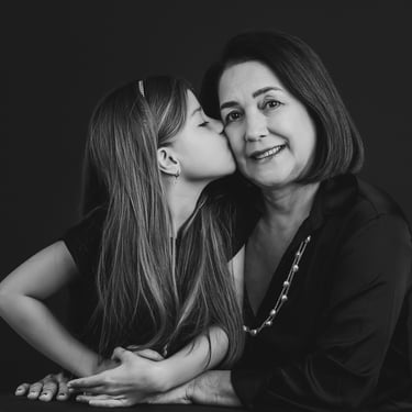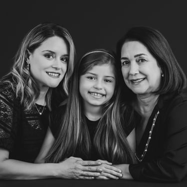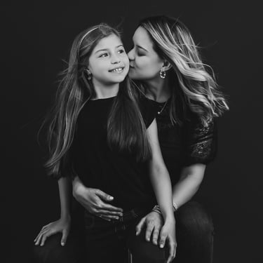 En estas sesiones, mi objetivo es crear retratos (medio cuerpo) sobre fondo negro, que trasciendan el tiempo y que capturen la esencia pura de la relación entre una madre y sus hijos. Con la simplicidad y la elegancia del blanco y negro, logramos imágenes atemporales que reflejan la conexión y el amor en su forma más pura.